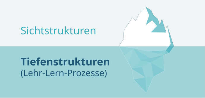 Die Forschung zeigt allerdings, dass der wesentliche und für den fachlichen Leistungszuwachs bedeutsame Teil unter – um in der Eisberg-Metapher zu bleiben – der Wasseroberfläche liegt, in den sogenannten Tiefenstrukturen. Hierzu gehören all jene Merkmale der Lehr-Lern-Prozesse, die nicht auf den ersten Blick ersichtlich sind, also die Basisdimensionen wirksamen Unterrichts.